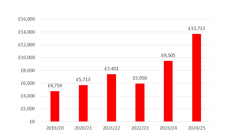 The Let Property Campaign (LPC), which was launched in the 2013/14 tax year, has brought in £570 million pounds in total from UK residential landlords. HMRC recovered £13,713 in tax per disclosure in 2024/25, by far the highest amount since the campaign’s inception.
