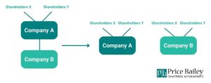 A straightforward example of a non-partition direct statutory demerger involves Company A, which operates a trade (Trade A), and is owned by Shareholders X and Y. Company A owns Company B, which also operates a trade (Trade B). In this case, Company B is demerged from Company A so that it is owned by Shareholders X and Y directly. It is important to note that Shareholders X and Y hold the same proportion of shares in Company B as they own in Company A.