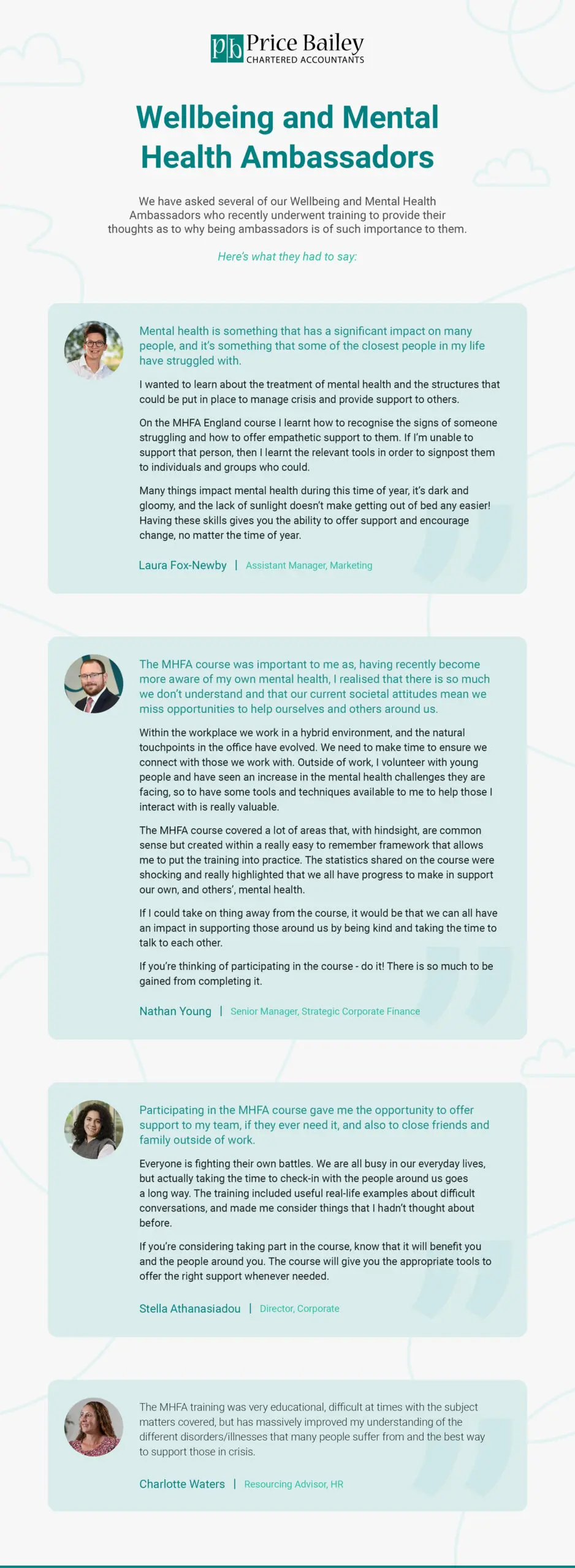 Price Bailey’s Wellbeing and Mental Health Ambassadors